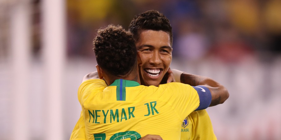 Brasil: Roberto Firmino, aos 10, e Neymar, aos 43 minutos do 1T