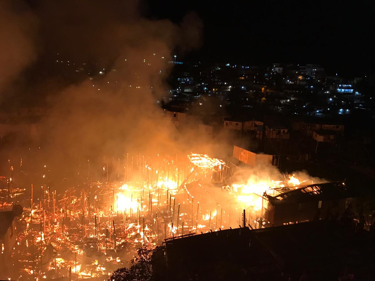 O incêndio é de grandes proporções e está ocorrendo na Rua Nova, beco São Francisco. As equipes dos bombeiros montaram três pontos distintos de trabalho para o combate ao incêndio. A região é de difícil acesso e as residências de madeira, construídas coladas, acabam facilitando a proliferação do fogo e dificultando o combate. O incêndio ainda não foi controlado.