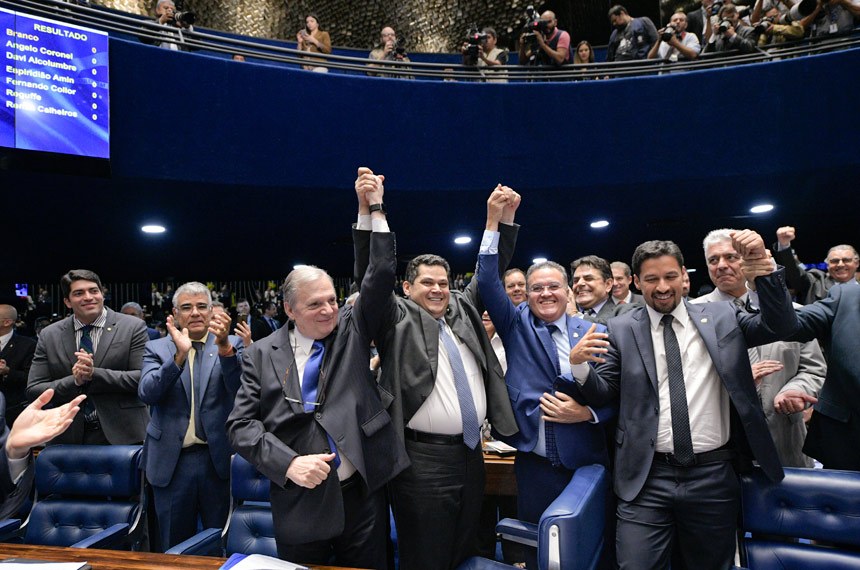 Com os votos de 42 senadores, Davi Alcolumbre (DEM-AP) foi eleito neste sábado (2) presidente do Senado Federal para os anos de 2019 e 2020. O senador Espiridião Amim (PP-SC) obteve 13 votos, o senador Angelo Coronel (PSD-BA) teve 8 votos, o senador Reguffe (sem partido-DF) recebeu 6 e o senador Fernando Collor (Pros-AL) obteve 3 votos. O senador Renan Calheiros (MDB-AL) retirou sua candidatura durante a segunda votação em cédulas, após a anulação da primeira votação, mas obteve ainda 5 votos. Quatro senadores não votaram.