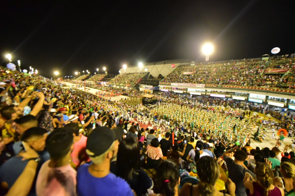 Aparecida – A Mocidade Independente de Aparecida fechou o desfile defendendo o enredo “Égua maninho, espia só! Tem açaí, tem tucupi, tem maniçoba. Tem carimbó, Çairé e Siriá. Tem boto, tem Iara, tem marajó… Encantarias de arrepiar. Tem Ver-o-peso, tem rio e mar, e tem Nazinha a abençoar… A Aparecida vem mostrar que aqui também tem Pará!”, uma grande homenagem ao Estado vizinho.