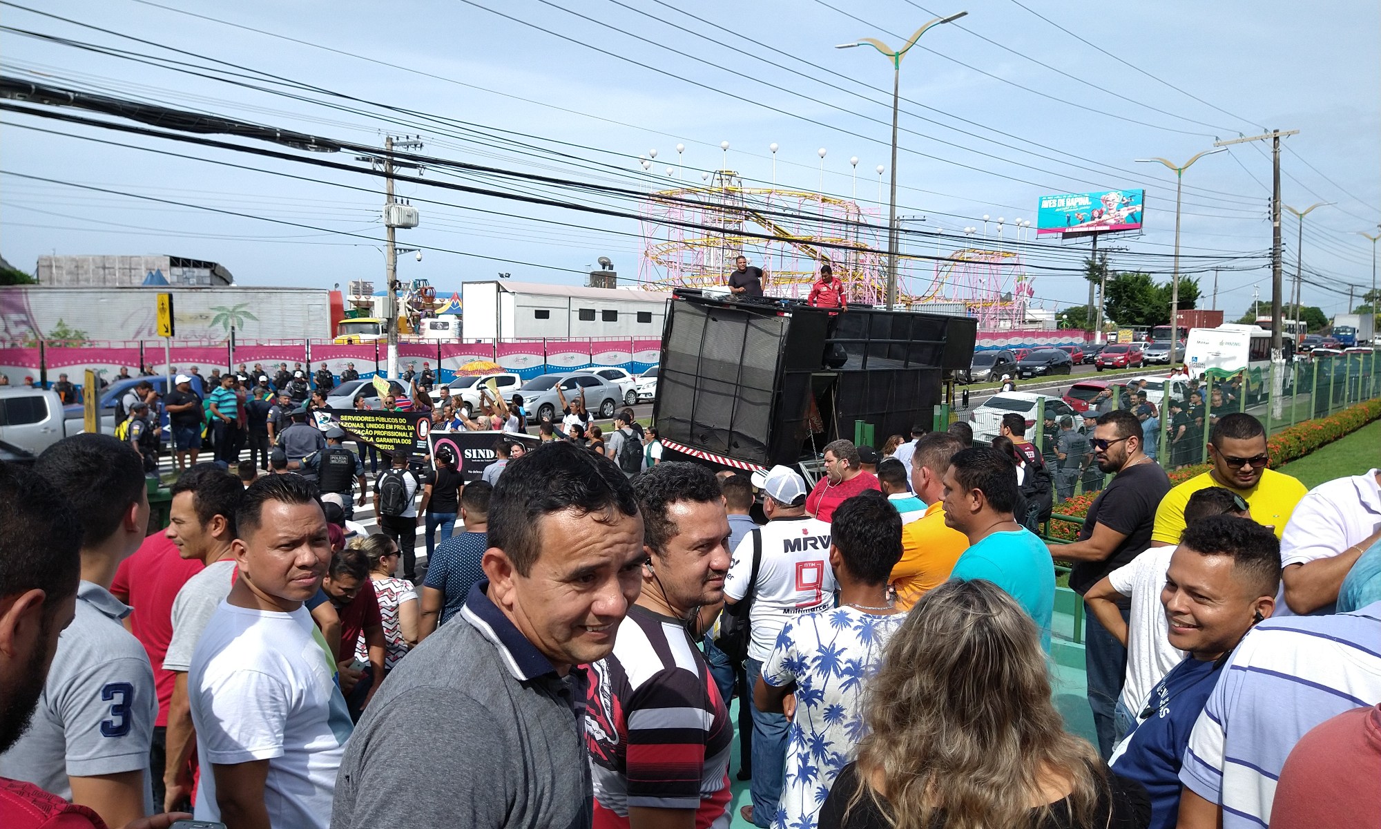 Na entrada da sede da Assembleia Legislativa do Amazonas, sindicatos de servidores públicos da educação, saúde e segurança pública se manifestavam contra o governo com faixas, cartazes e carro de som na avenida Mário Ypiranga. A principal reclamação dos servidores era do tratamento dado pelo governador às carreiras e condições de trabalho, em especial no interior do Estado.