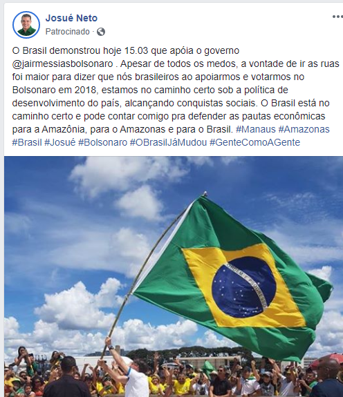“Vamos utilizar todas as ações no sentindo de fazer uma campanha didática e de prevenção para os servidores e para a sociedade. Acima da atividade parlamentar está a vida e a saúde”, afirmou Josué Neto na coletiva. Já em seu perfil no Facebook, Neto mostrou não se importar com as aglomerações em público. “Apesar de todos os medos, a vontade de ir as ruas foi maior para dizer que nós brasileiros ao apoiarmos e votarmos no Bolsonaro em 2018, estamos no caminho certo”, disse.