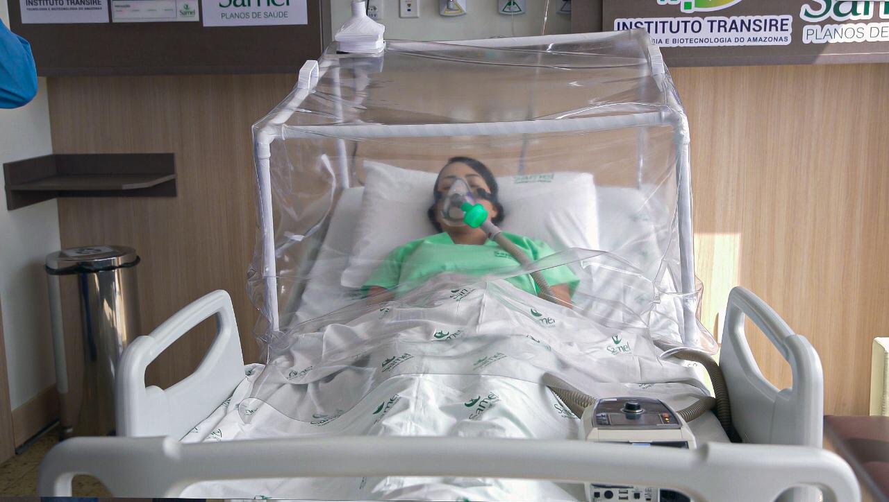 A cápsula de acrílico para ventilação mecânica não-invasiva vem sendo utilizada no Amazonas para o tratamento de pacientes com dificuldade de respiração em decorrência da Covid-19, infecção causada pelo novo coronavírus. O método foi desenvolvido pela Transire, empresa do Pólo Industrial de Manaus e estava sendo usadas pela rede de saúde particular Samel.