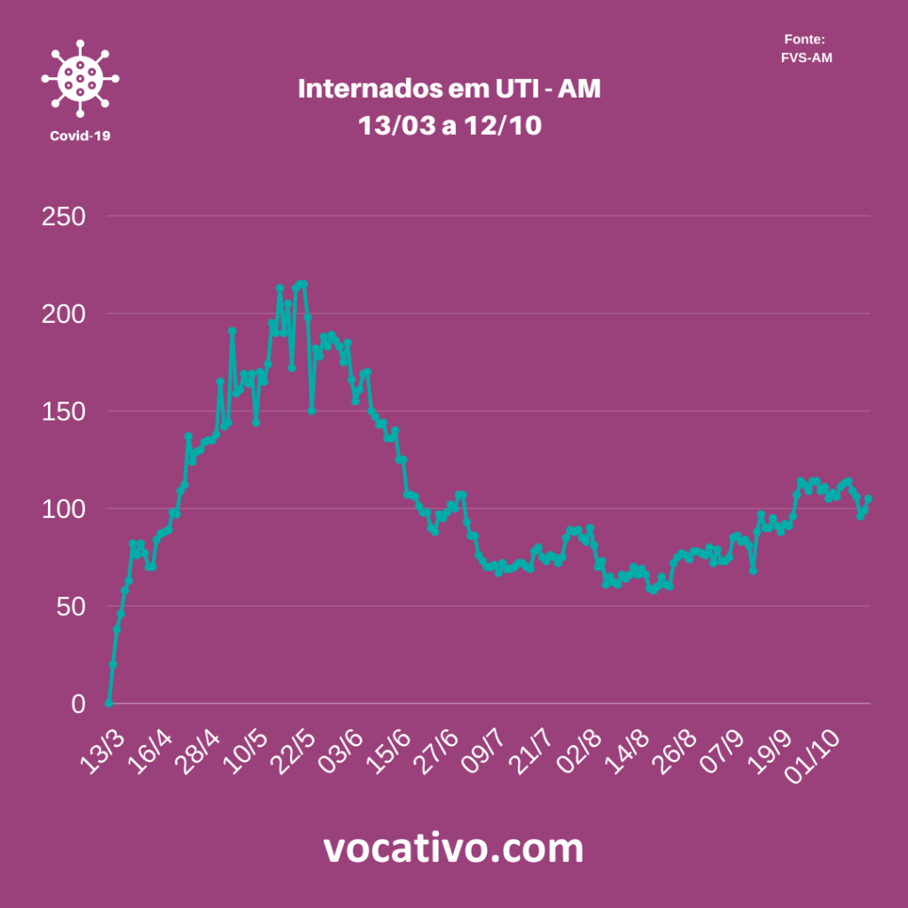 Entre os casos confirmados de Covid-19 no Amazonas, há 327 pacientes internados, sendo 221 em leitos clínicos (69 na rede privada e 152 na rede pública), 105 em UTI (53 na rede privada e 52 na rede pública) e um em sala vermelha, estrutura voltada à assistência temporária para estabilização de pacientes críticos/graves para posterior encaminhamento a outros pontos da rede de atenção à saúde.