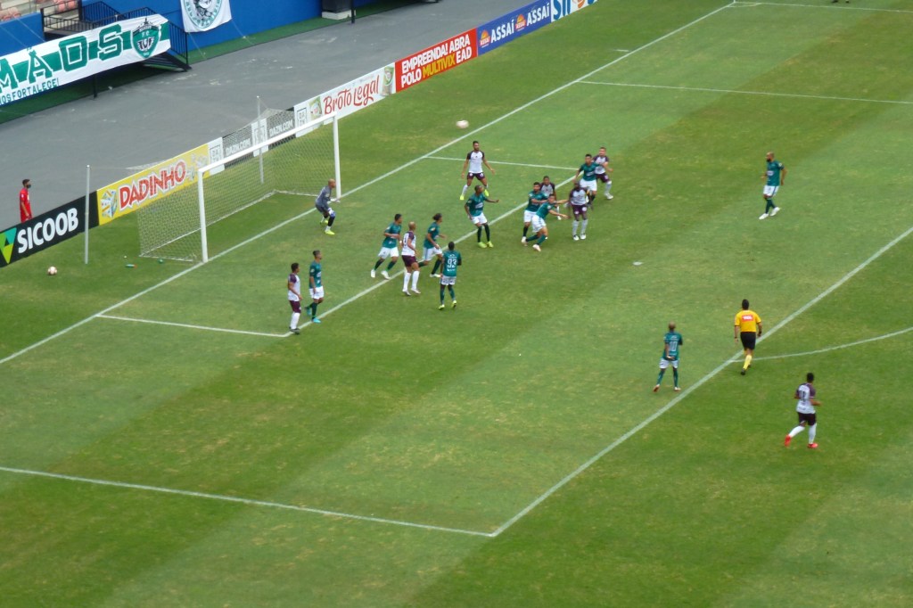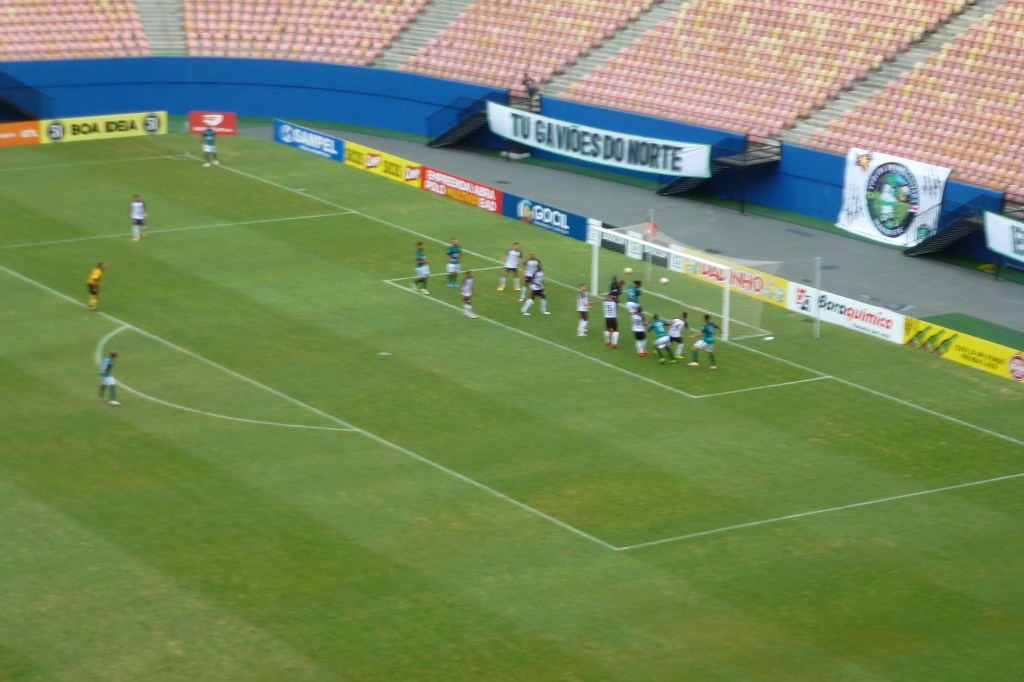 27:30 – Na cobrança, a zaga do Manaus afasta o perigo;