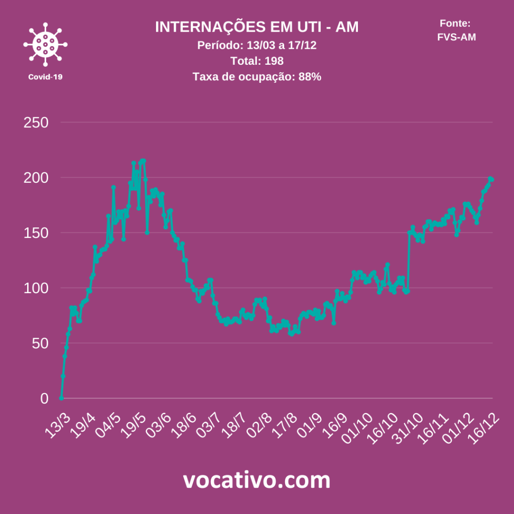 Segundo o boletim, foram confirmados 13 óbitos por Covid-19, sendo oito ocorridos no dia 16/12 e cinco óbitos foram encerrados por critérios clínicos, de imagem, clínico-epidemiológico ou laboratorial, elevando para 5.049 o total de mortes. Na capital, de acordo com dados da Prefeitura de Manaus, nesta quarta-feira (16/12), foram registrados sete sepultamentos por Covid-19.
