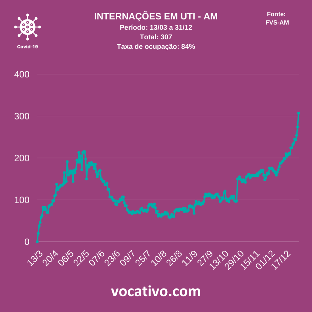 Na capital, de acordo com dados da Prefeitura de Manaus, nesta quarta-feira (30/12), foram registrados nove sepultamentos por Covid-19. Entre pacientes em Manaus, há o registro de 3.380 óbitos confirmados em decorrência do novo coronavírus. No interior, são 61 municípios com óbitos confirmados até o momento, totalizando 1.905.