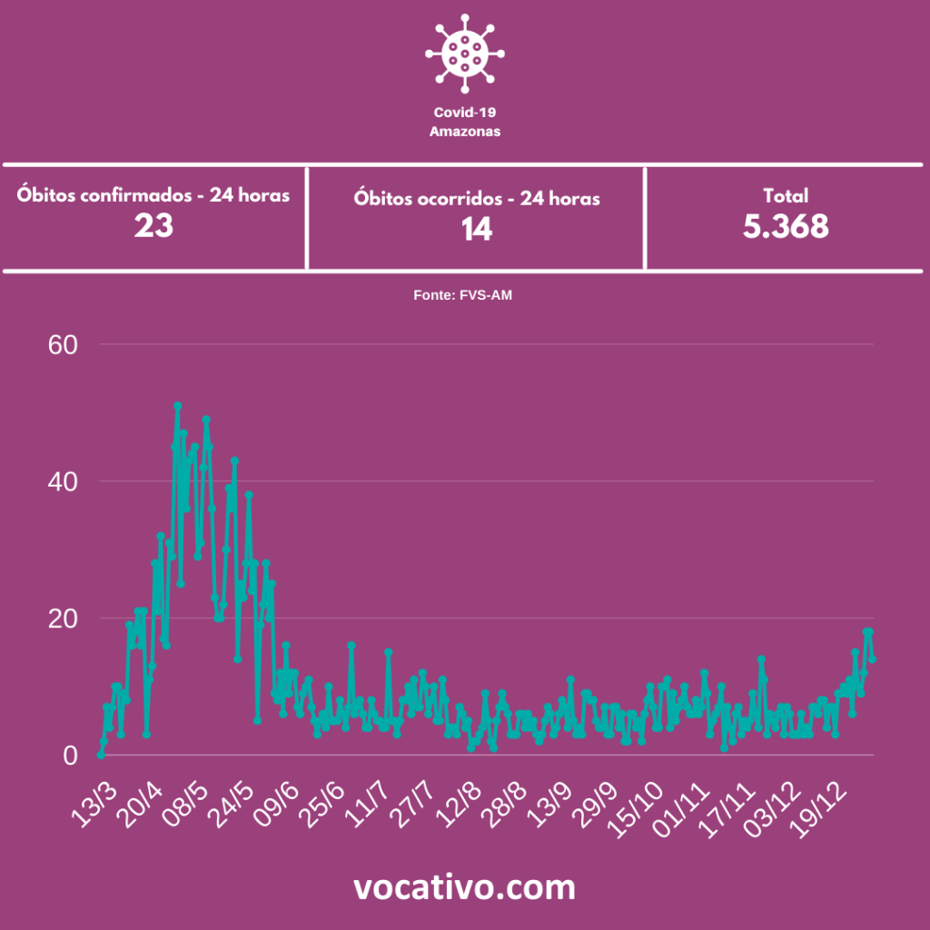 Segundo o boletim, foram confirmados 23 óbitos por Covid-19, sendo 14 ocorridos no domingo (03/01). Nove óbitos foram encerrados por critérios clínicos, de imagem, clínico-epidemiológico ou laboratorial, elevando para 5.368 o total de mortes.