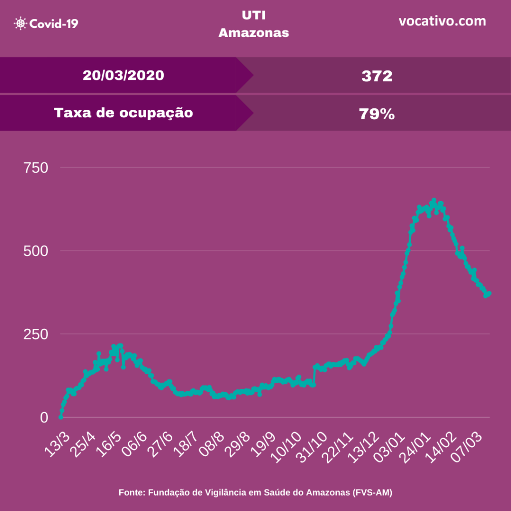 Mortes – Foram confirmados 32 óbitos por Covid-19, sendo oito ocorridos no dia 19/03 e 24 óbitos encerrados por critérios clínicos, elevando para 11.775 o total de mortes (8.318 óbitos na capital e 3.457 no interior). A Prefeitura de Manaus registrou 52 sepultamentos neste sábado, sendo 11 declarados como Covid-19.