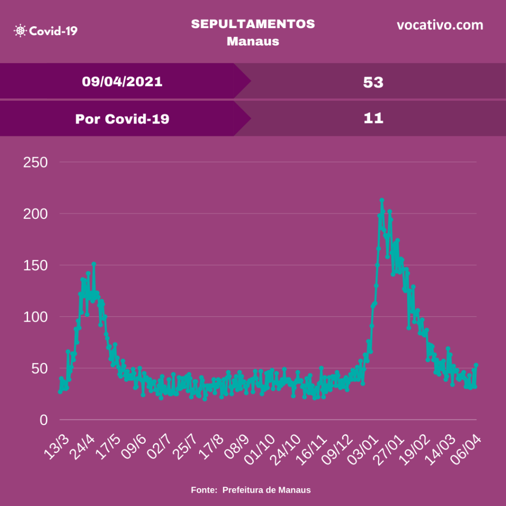 A Fundação de Vigilância em Saúde do Amazonas (FVS-AM) confirmou o registro de 1.172 novos casos de Covid-19, totalizando 357.159 casos da doença no estado nesta sexta-feira (09/04). Foram confirmados mais 24 óbitos, sendo 10 ocorridos no dia 08/04, elevando para 12.226 o total de mortes.