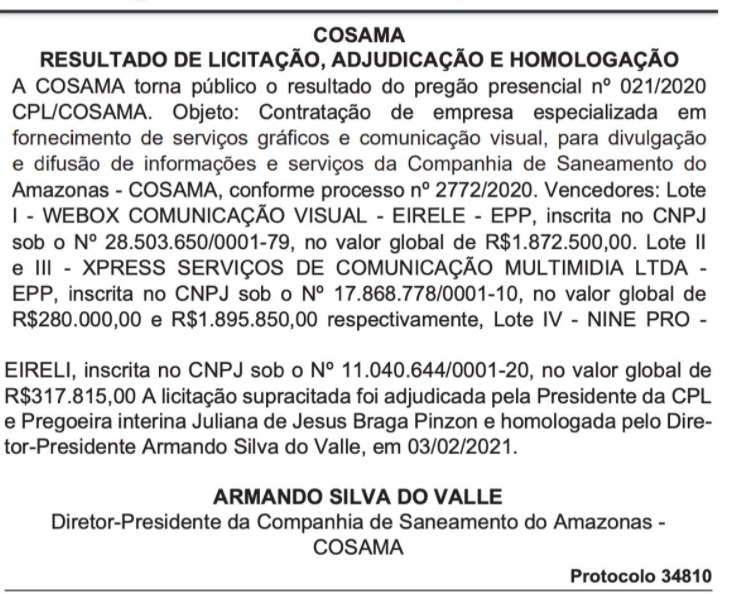 De acordo com dados do Portal da Transparência, os contratos de publicidade para a Companhia de Saneamento do Amazonas (Cosama) e Departamento de Trânsito do Estado do Amazonas (Detran-AM), somam quase R$ 12 milhões. Enquanto isso, são apenas R$ 4,5 milhões para ajuda humanitária às cidades atingidas pela subida dos rios. Os contratos são de R$ 8 milhões para o Detran e outra de R$ 4,36 milhões referente à Cosama.