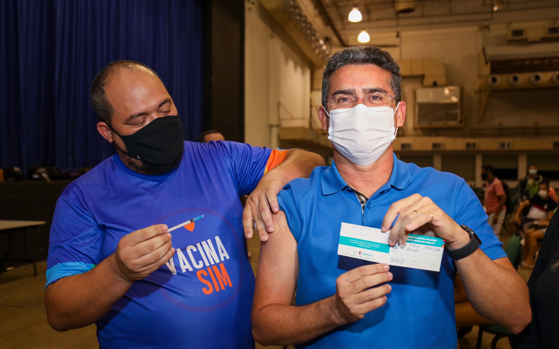 A vacinação aconteceu no posto de imunização instalado pela Secretaria Municipal de Saúde (Semsa), no Centro de Convenções Studio 5, localizado no Distrito Industrial, zona Sul. David Almeida recebeu a vacina produzida pela empresa americana Pfizer. A segunda dose está prevista para o mês de setembro.