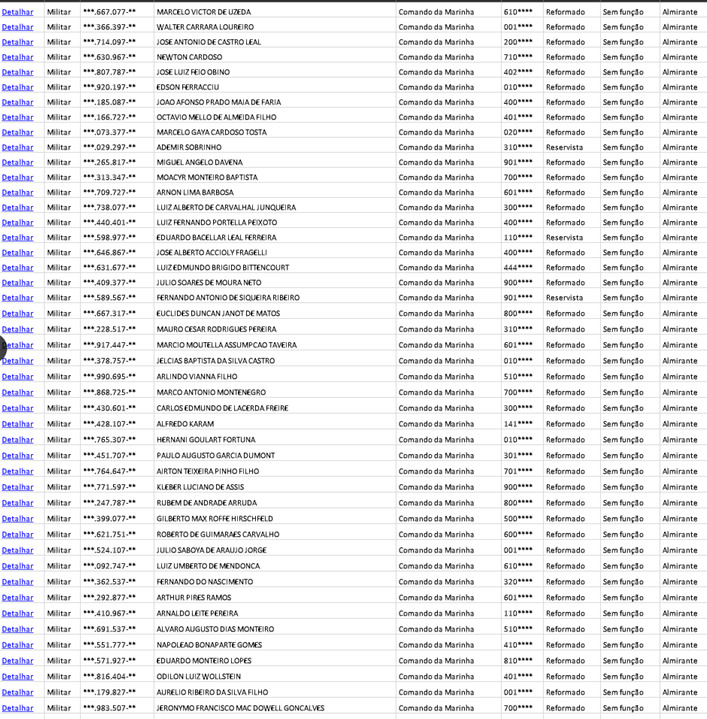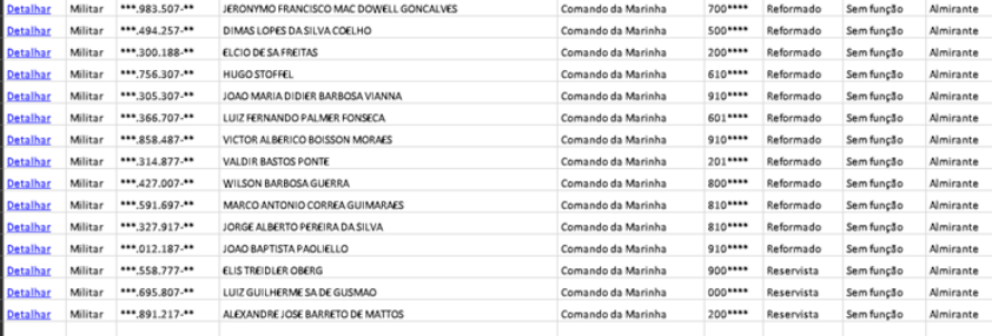 Na Marinha e na Aeronáutica, os postos equivalentes ao de marechal são, respectivamente, o de almirante e de marechal do ar, igualmente extintos. Nessas outras duas organizações militares a nomeação para a posição inexistente também corre solta. Na listagem disponível no Portal da Transparência é possível perceber que vários almirantes de esquadra e tenentes-brigadeiros (postos compatíveis com o de general de exército no Exército) receberam a “promoção” que deixou de existir há 54 anos. Eles somam 115 nesses dois ramos militares.