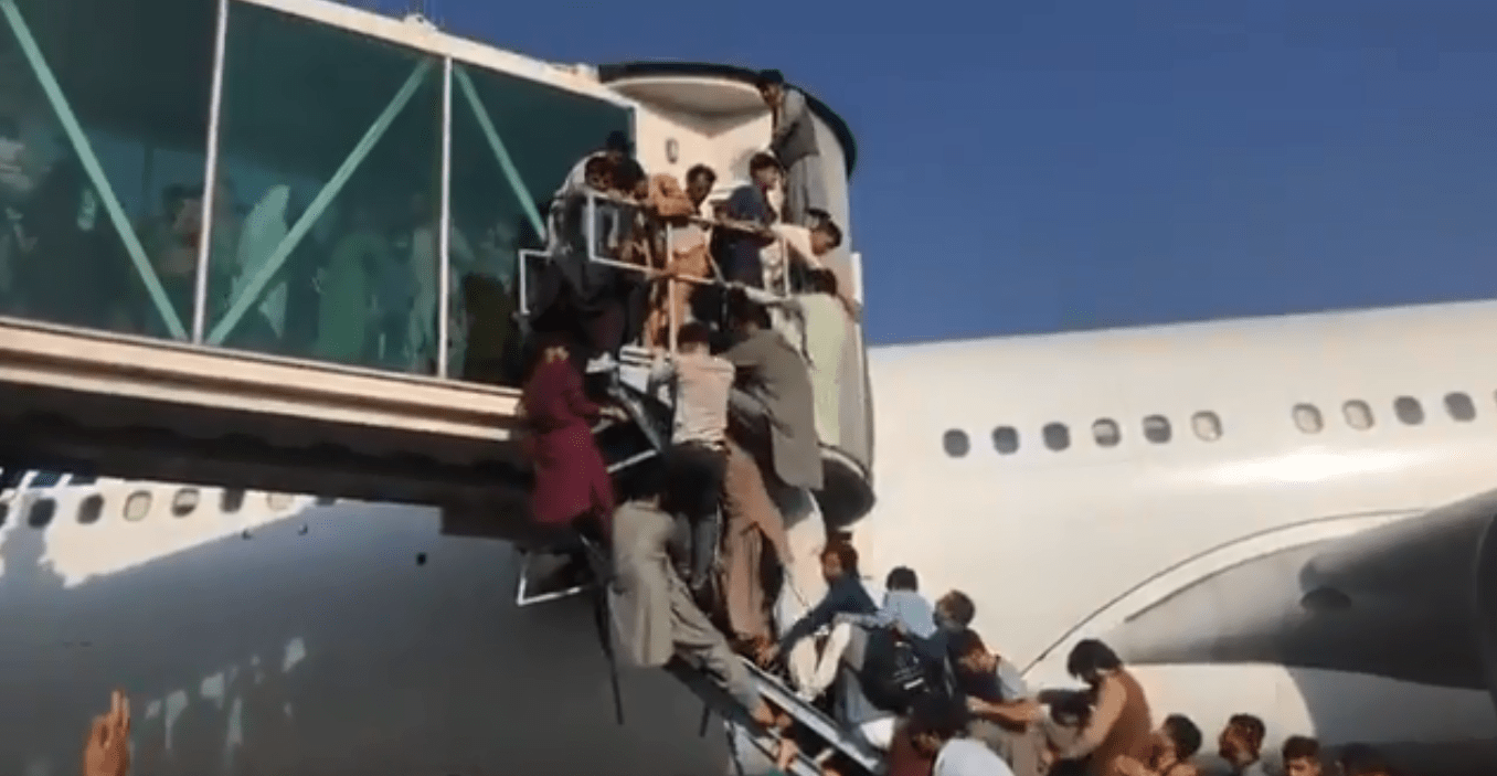 Multidões lotaram o aeroporto tentando escapar, incluindo algumas pessoas que se agarraram a um avião de transporte militar dos EUA que taxiava na pista, de acordo com imagens publicadas por uma empresa de mídia. Soldados norte-americanos atiraram para o alto para deter pessoas que tentavam embarcar à força em um voo militar que deveria retirar diplomatas e pessoal da embaixada dos EUA, disse uma autoridade norte-americana.
