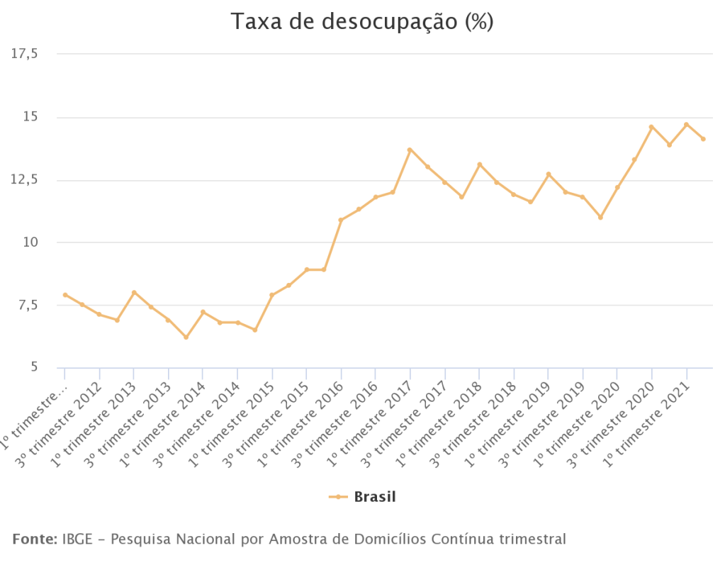 O Brasil ainda soma 14,4 milhões de pessoas na fila em busca de um trabalho. Além disso, a taxa de desocupação recuou apenas 0,6 pontos percentuais em relação ao primeiro trimestre. É o que mostram dados são da Pesquisa Nacional por Amostra de Domicílios (PNAD) Contínua, divulgada nesta terça-feira (31/08/21) pelo IBGE.
