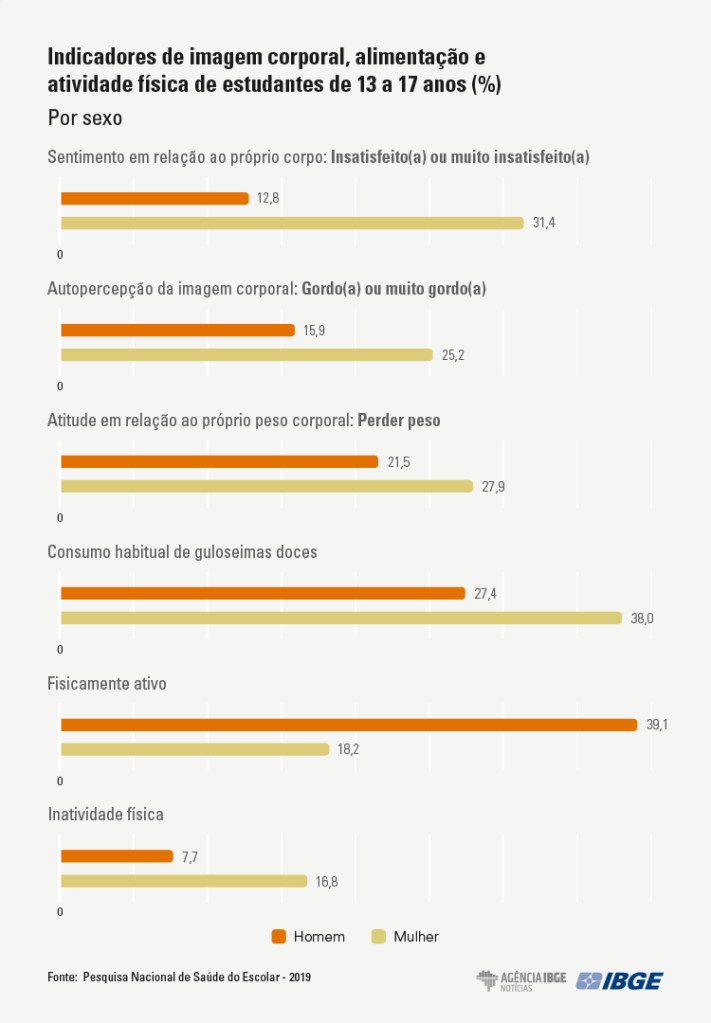 “Existem relações muito intrincadas entre imagem corporal, violências e saúde mental. A questão de gênero está muito colocada”, diz Alessandra Pinto, analista da PeNSE. Ela se remete à ditadura do corpo ideal, em que nem os brinquedos ficam de fora. “Existe um padrão corporal e a menina é exposta a isso. Existem estudos na área de psicologia que falam sobre brinquedos. Qual é a imagem que tem da boneca? Magérrima. Há um padrão muito bem definido”, ressalta.