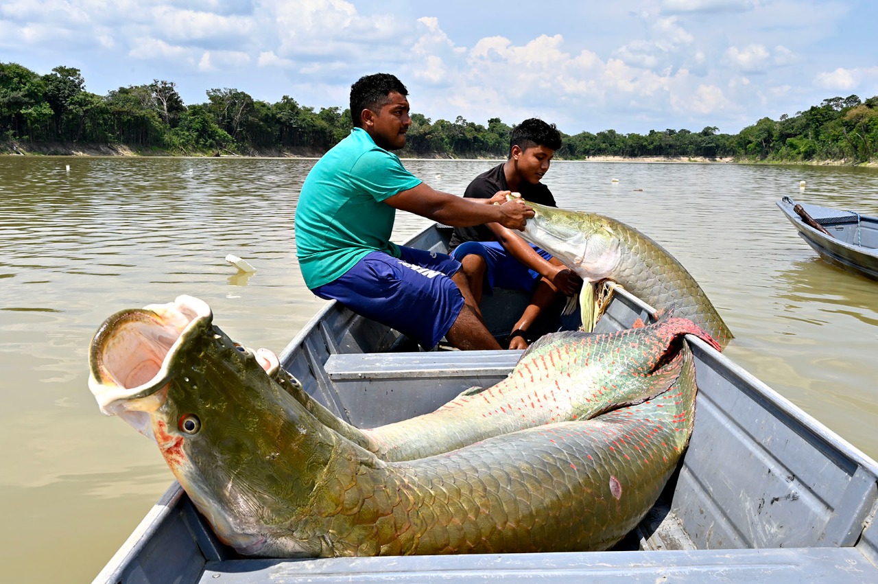 O pirarucu, uma das mais famosas espécies de peixe da Amazônia, está se tornando uma alternativa de renda para as populações tradicionais, além de possibilitar a conservação de milhões de hectares de floresta. Aliás, o gigante que pode pesar mais de 200 quilos e chegar a 3 metros de comprimento já esteve ameaçada de extinção, mas foi salvo graças a ações coletivas de comunidades ribeirinhas e indígenas.