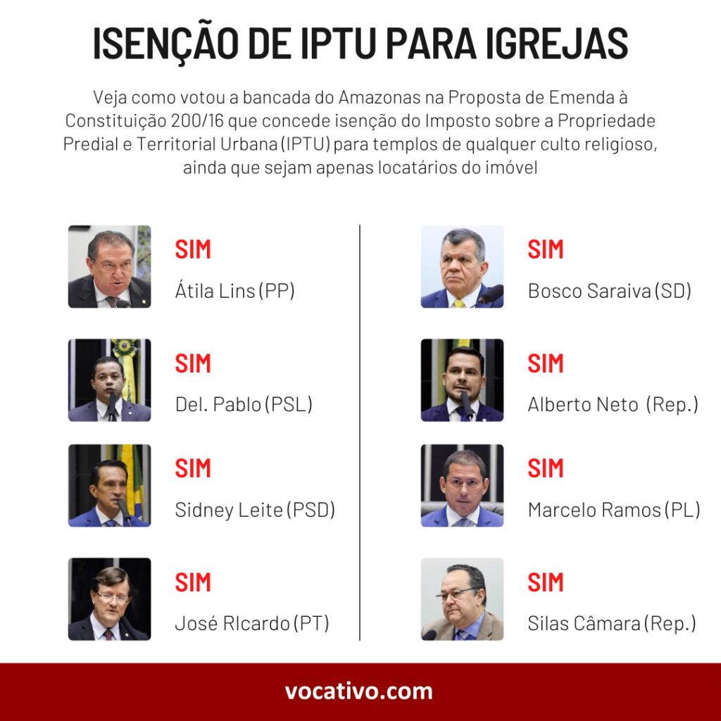 A Câmara dos Deputados aprovou a Proposta de Emenda à Constituição 200/16, do Senado, que concede isenção do Imposto sobre a Propriedade Predial e Territorial Urbana (IPTU) para templos de qualquer culto religioso, ainda que sejam apenas locatários do imóvel.