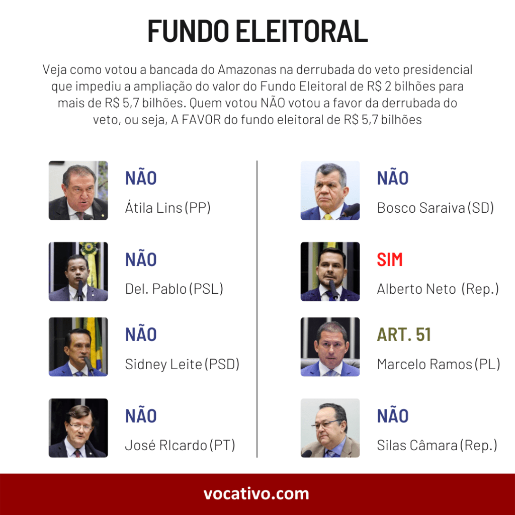 O Congresso Nacional derrubou hoje (17) um veto presidencial e, com isso, ampliou o valor do Fundo Eleitoral de R$ 2 bilhões para mais de R$ 5,7 bilhões. Em agosto, o presidente da República havia vetado essa ampliação quando sancionou a Lei de Diretrizes Orçamentárias (LDO) de 2022. O trecho, antes vetado e agora derrubado, agora segue para promulgação.