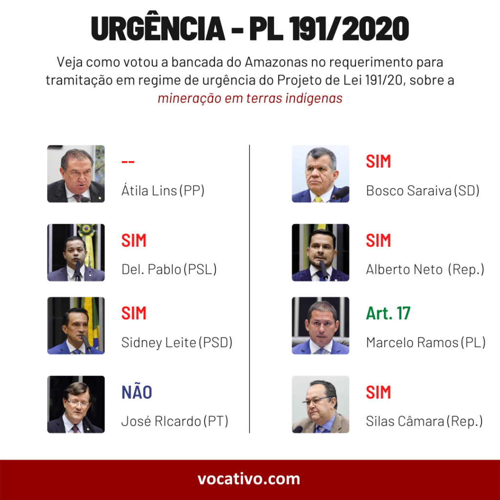 O deputado Capitão Alberto Neto (Republicanos-AM) também defendeu a regulamentação da mineração em terras indígenas. “Se não tiver uma regulamentação sobre isso, vai causar uma insegurança jurídica e um atraso no nosso País”, disse.