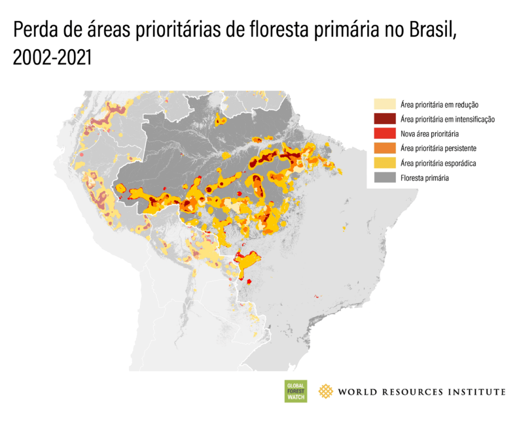 O Brasil detém cerca de um terço das florestas tropicais primárias remanescentes do mundo e tem mantido taxas de perda de florestas primárias acima de 1 milhão de hectares desde 2016, segundo os dados do GFW. “A perda de floresta primária no Brasil é especialmente preocupante, pois novas evidências revelam que a floresta amazônica está perdendo resiliência, estando mais perto de um ponto de inflexão do que se pensava anteriormente”, diz Fabíola Zerbini, diretora de Florestas, Agricultura e Uso do Solo do WRI Brasil.