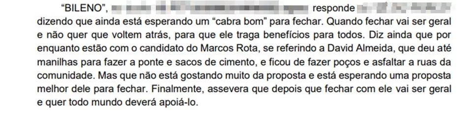 Em 2020, porém, Bileno era então líder do CV. Quando foi preso, foi encontrado em seu mensagens que continham conversas suspeitas com candidatos às vésperas do pleito daquele ano. Um dos diálogos falaria de supostos acordos com David e Marcos Rotta (PP), atualmente prefeito e vice-prefeito de Manaus. Procurada pelo Vocativo, a Secretaria Municipal de Comunicação (Semcom) não se manifestou até o fechamento desta repercussão.