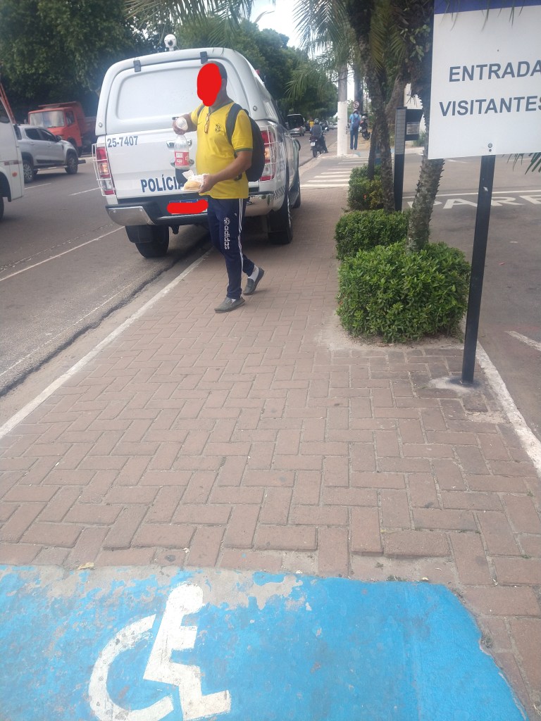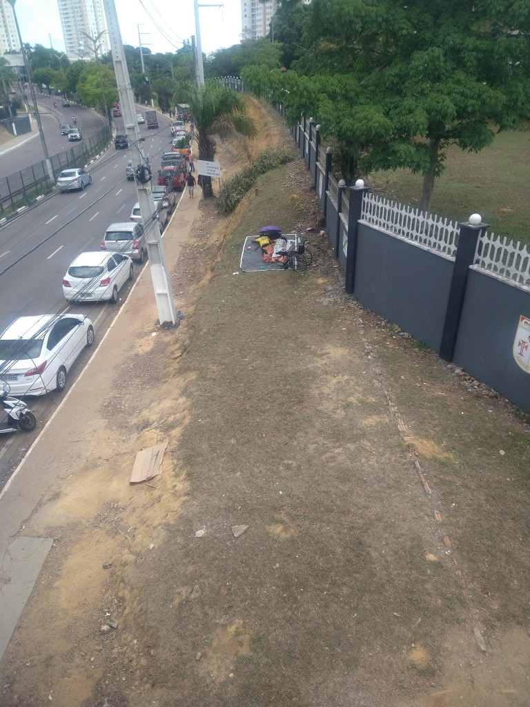 Em dado momento que estou circulando pelo local, chega uma viatura da Polícia Militar do Amazonas e estaciona exatamente em frente aos manifestantes. Ao ver a cena, comecei a me aproximar. Por um momento, pensei em abordar os policiais e fazer perguntas, mas uma imagem me fez mudar de ideia.