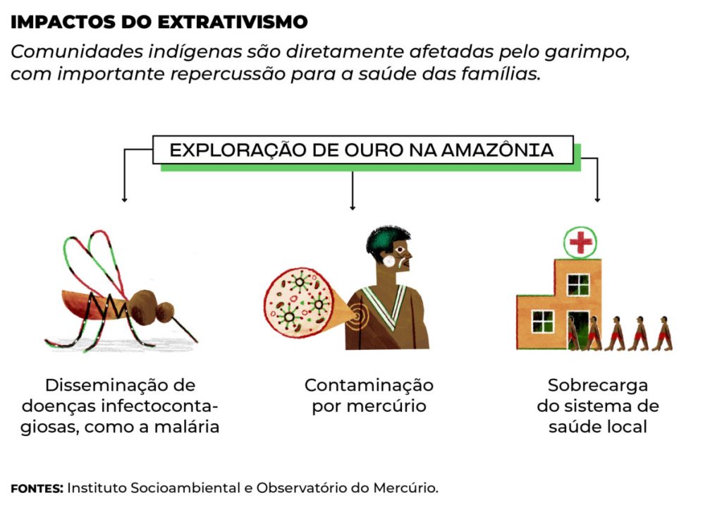 Para começar, a perda sistemática de territórios tradicionais para madeireiros e fazendeiros e a contaminação de rios pelo garimpo teve grande impacto sobre os meios de subsistência dessas populações, pondo em risco sua segurança alimentar e, portanto, também sua saúde.
