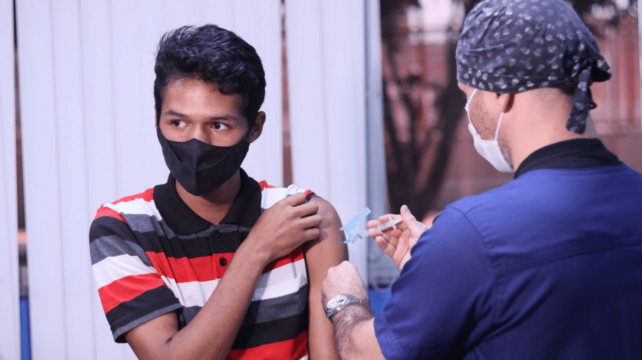 ⦁ 12 a 17 anos: 2 doses da Pfizer ou 2 da CoronaVac, com reforço preferencialmente da Pfizer