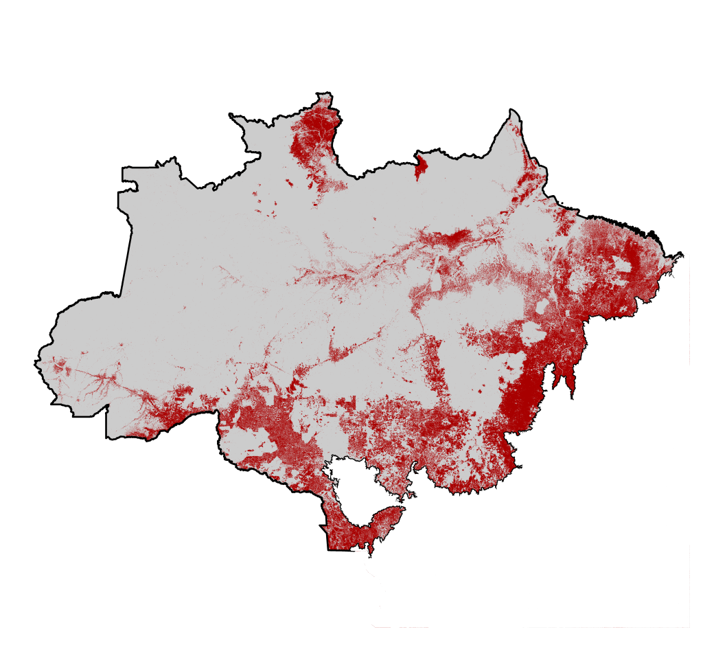 A vegetação nativa preenchia 44,3% da área queimada na Amazônia nos últimos 38 anos, enquanto que 55,7% do fogo no período ocorreu em áreas antrópicas, de uso humano, principalmente nas pastagens.