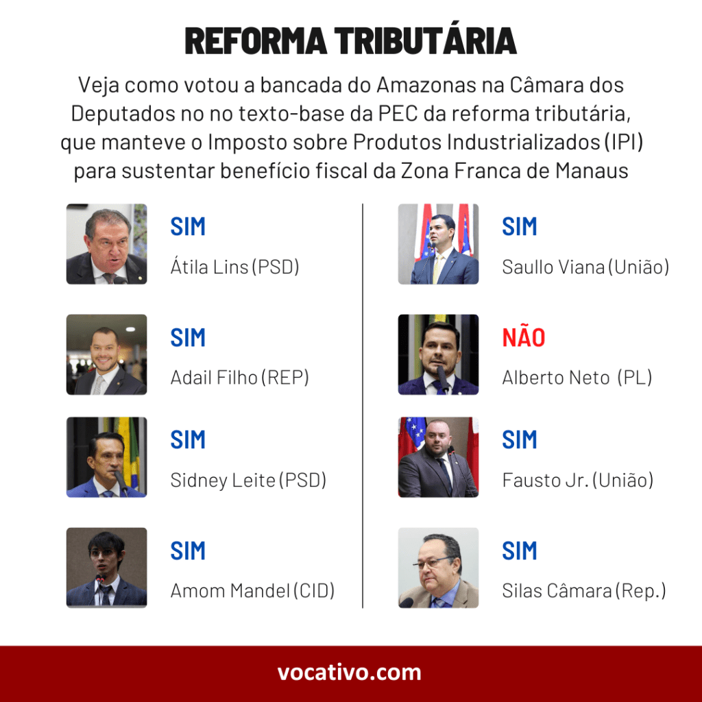 A Câmara dos Deputados aprovou em primeiro turno o texto-base da PEC da reforma tributária, por 371 votos a 121. A grande novidade foi a retomada do uso do Imposto sobre Produtos Industrializados (IPI) para sustentar benefício fiscal da Zona Franca de Manaus (ZFM).