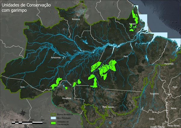 A análise excluiu a categoria Área de Proteção Ambiental (APA). Considerou-se garimpo ilegal toda extração mineral realizada dentro de Unidades de Proteção Integral e de Uso Sustentável que não possuísse autorização no respectivo plano de manejo.