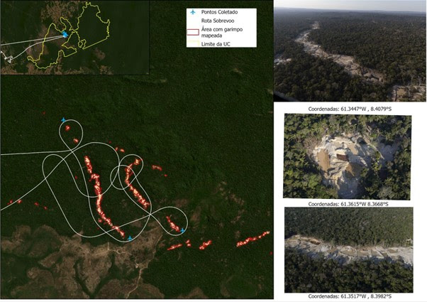 A análise do garimpo dentro das Unidades de Conservação foi realizada utilizando imagens de satélite do sistema Planet Lab e Sentinel -2. Foram utilizadas ainda alertas do Papa Alpha, ferramenta própria do Greenpeace, que utiliza os sensores GLAD (Global Analysis and Discovery). Sensores RADD (Radar para Detecção de Desflorestamento) foram empregados para analisar áreas com muita cobertura de nuvens. Além disso, o Greenpeace realizou um sobrevoo no Parque Nacional dos Campos Amazônicos e Parque Nacional Mapinguari para registrar in loco essas atividades.
