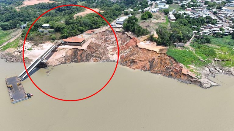 “Os fatores que levaram à ruptura do terreno foram: localização do porto na margem erosiva, onde o Rio Solimões faz a curva, bem em frente à área de deslizamento; presença de minas d’água na base do talude, saturando o solo; aterro lançado sobre os solos instáveis da margem do Rio Solimões, cuja sobrecarga pode ter contribuído para sua desestabilização, somado à descida rápida (e acima da média) do nível d’água, para o período de vazante recorde”, indica o documento.