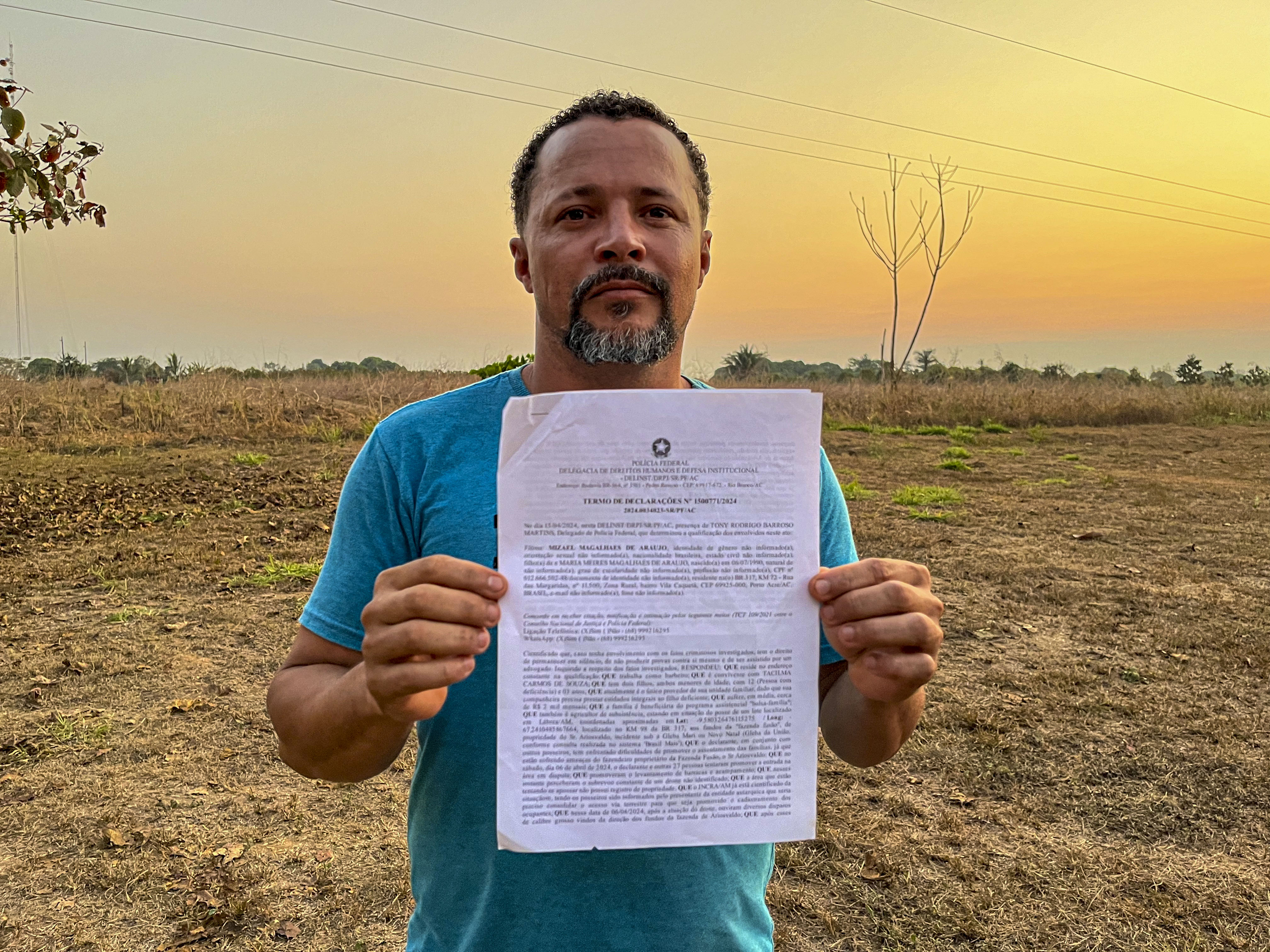 “Faz uns dois anos, dois anos e meio, que a gente decidiu ocupar as terras, fazer um assentamento lá. Desde o começo, quando a gente estava fazendo o barraco, eles [pistoleiros] já queimavam. A gente ia lá, passava dois, três dias, às vezes até quatro, e era obrigado a sair porque eles iam lá e queimavam o barraco”, afirma Edgeberson José Alves, posseiro.