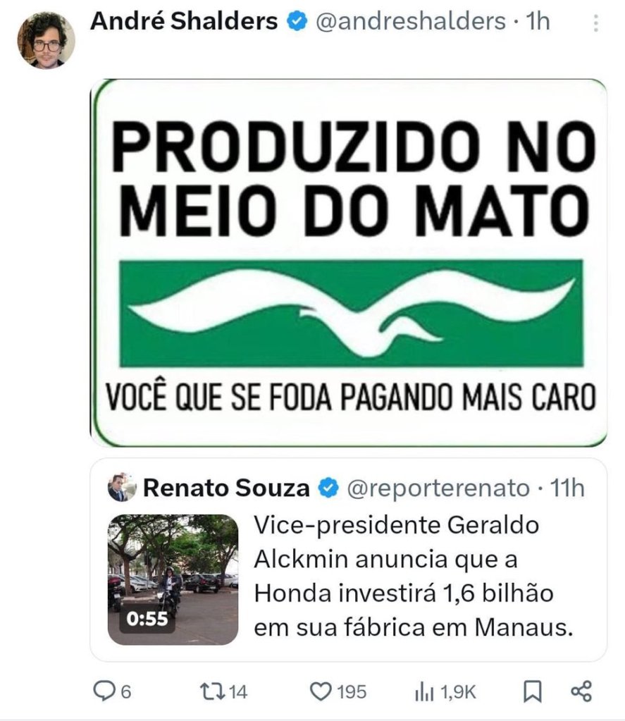 Na tarde deste sábado, 4 de outubro de 2025, um comentário nas redes sociais expôs mais uma vez o preconceito e a falta de preparo de parte da imprensa brasileira para lidar com a Amazônia. O jornalista André Shalders, do portal Metrópoles, publicou — e logo apagou — uma mensagem debochando da Zona Franca de Manaus, numa tentativa desajeitada de “análise econômica” que terminou como retrato fiel da arrogância e da ignorância que ainda predominam no debate público sobre a região. O mais triste, no entanto, é que essa expressão – “no meio do mato” – não é nova no nosso meio profissional.
