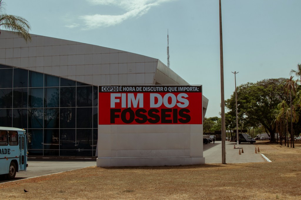 Para pressionar os governos, organizações da sociedade civil espalharam outdoors em Brasília durante a pré-COP, o último encontro de alto nível antes da conferência em Belém. A intenção é alertar sobre a necessidade do fim dos combustíveis fósseis.