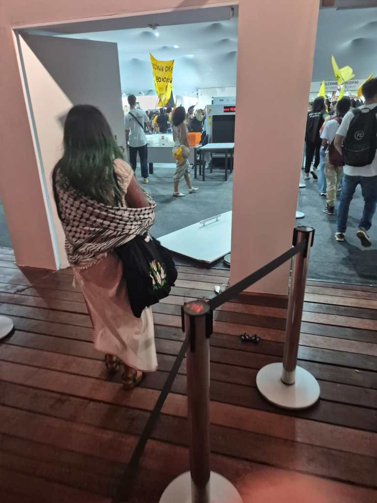 Entre os participantes estava o advogado Ronaldo Barbosa, de Ribeirão Preto (SP), que explicou à reportagem o motivo da ocupação e as reivindicações do grupo. “O protesto é por visibilidade. O que está acontecendo aqui é um símbolo da falta de espaço para o povo da Amazônia, para os indígenas, para os ribeirinhos, para os quilombolas, para quem vive os impactos reais das decisões que estão sendo tomadas nesta conferência”, afirmou.