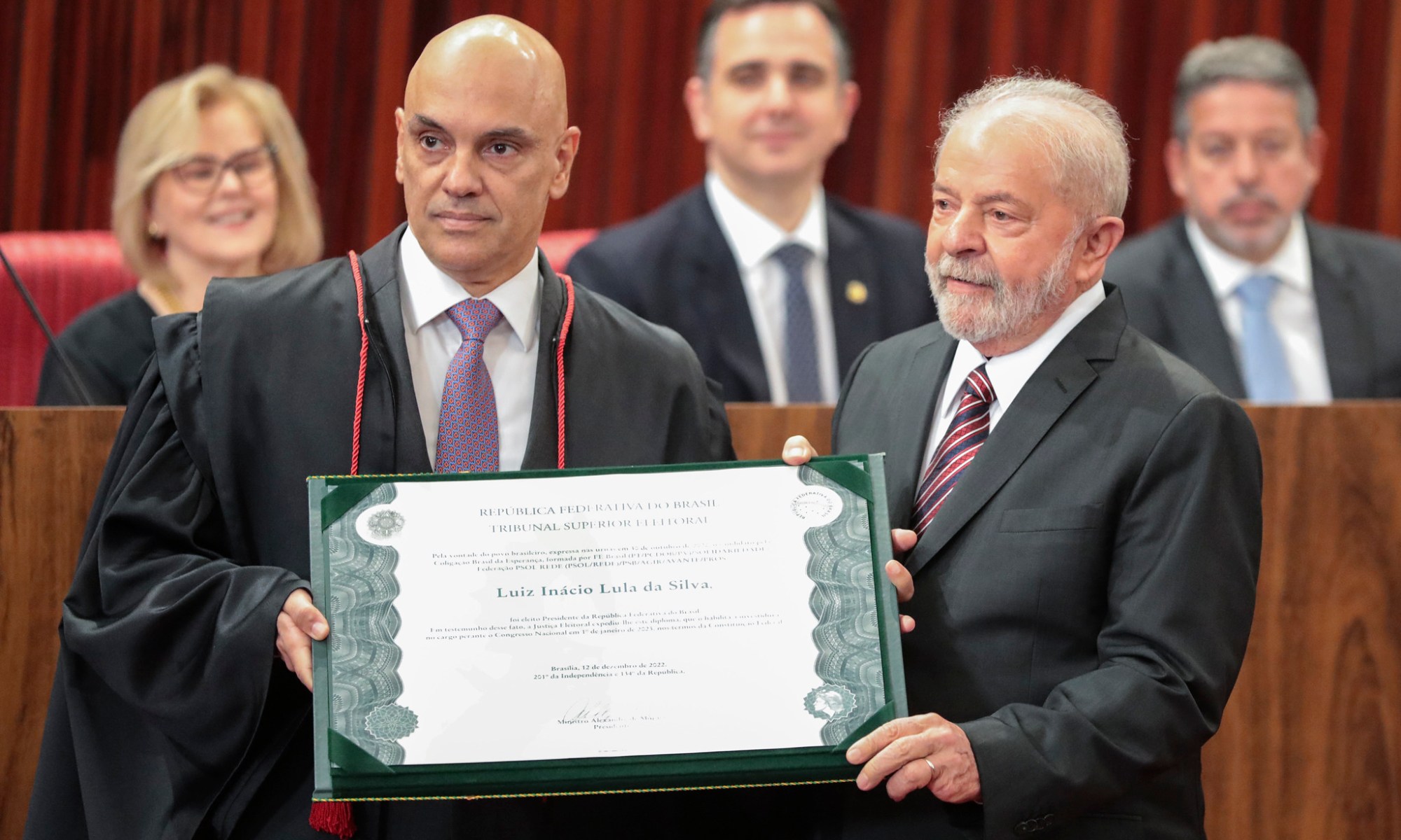 Lula discursou após ser diplomado pelo presidente do Tribunal Superior Eleitoral (TSE), ministro Alexandre de Moraes, como candidato eleito. O vice-presidente eleito, Geraldo Alckmin, também recebeu o documento. Após receber o diploma, Lula fez um discurso emocionado em defesa de democracia e do sistema eleitoral. Segundo o presidente eleito, durante as eleições, a nação foi “envenenada com mentiras” produzidas nas redes sociais, semeando “mentira e ódio”.